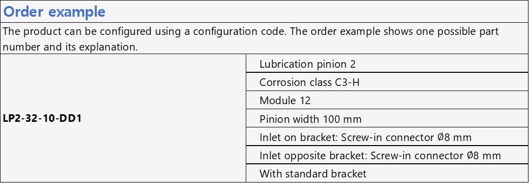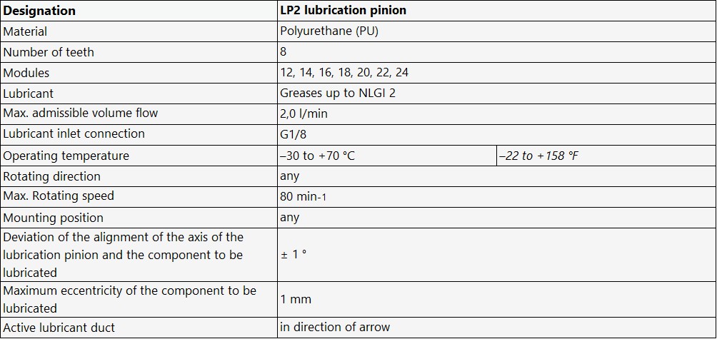 Lubrication pinion LP2/LPC