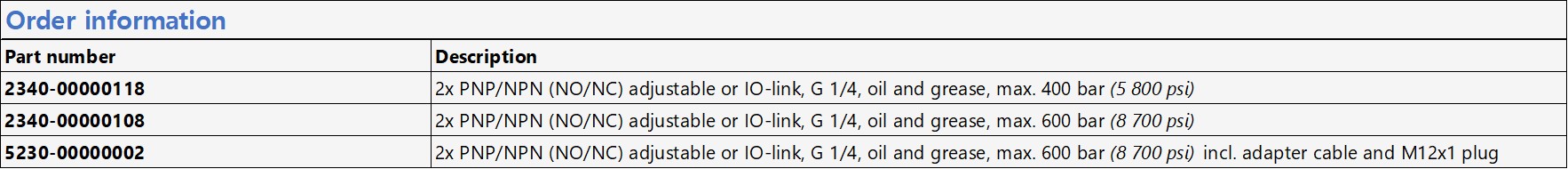2340-00000108/2340-00000118 압력 스위치/센서