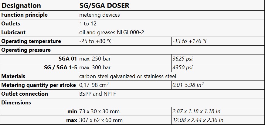 SG/SGA DOSER DUAL-LINE METERING DEVICE