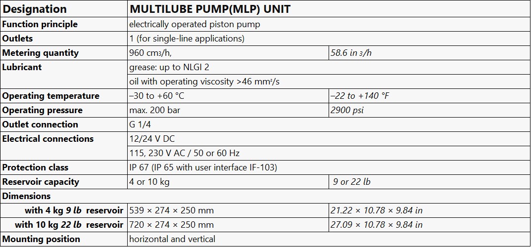 MLP (MULTILUBE PUMP) SINGLE-LINE UNIT
